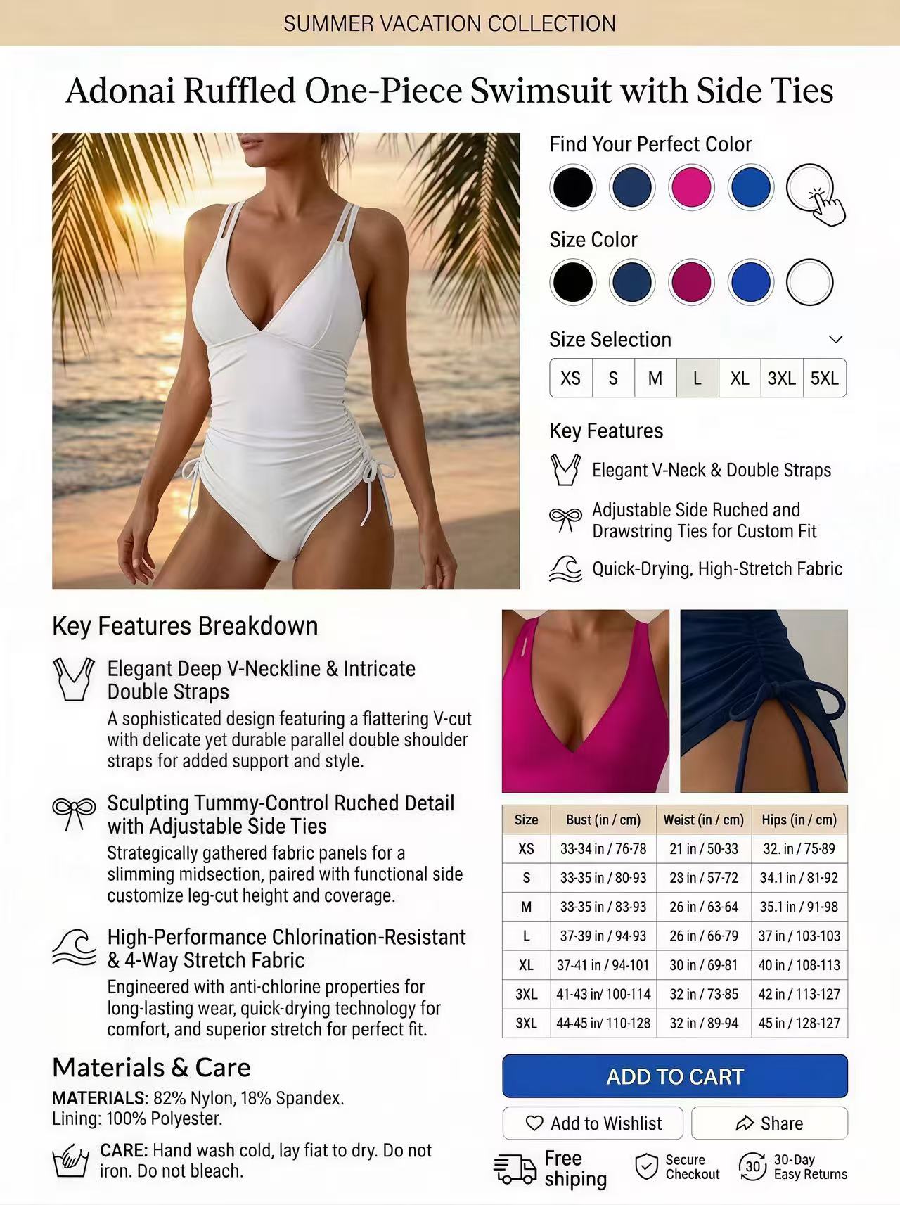 收腹褶皱:巧妙的褶皱设计,从视觉上收紧和抚平腹部。